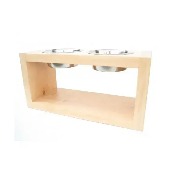 Tento jídelní stolek je určen pro velké pejsky. Je vyroben z elegantního dřeva olše, které má jemnou strukturu. Jeho ucelený tvar budí uklidňující dojem. Pro povrchovou úpravu je zvolen přírodní zdravotně nezávadný lak. Tento stolek je velice jednoduše čistitelný a bude vyhovovat všem velkým jedlíkům. Můžete si zvolit výšku stolku tak, aby odpovídal velikosti Vašeho pejska. Samozřejmostí jsou dvě nerezové snadno čistitelné misky o objemu 1,2 litru. Tento jídelní stolek je velice stabilní, dobře čistitelný a hygienický a je určen do interieru.